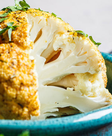 Déposez le chou-fleur dans un plat allant au four et laissez-le cuire pendant 35 minutes à 200°C.