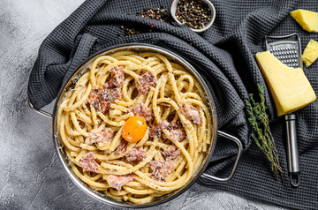 Pour des carbonara comme en Italie optez pour du pecorino à la place du parmesan, et du guanciale à la place des lardons !