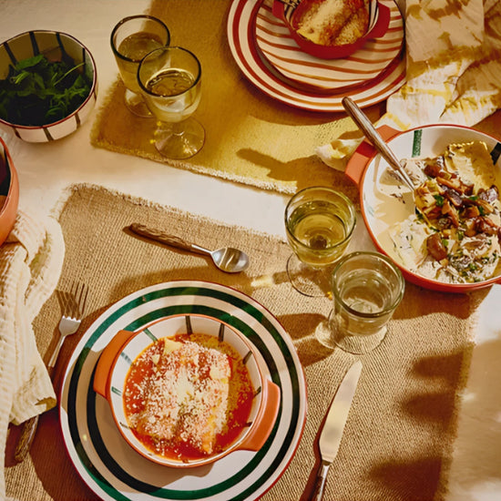 Apportez de la couleur à votre table avec l'assiette plate jaune de POMAX. Sa finition artisanale et ses rayures peintes à la main offrent une touche estivale. Parfaite pour vos plats principaux, elle illumine chaque repas avec éclat et joie.