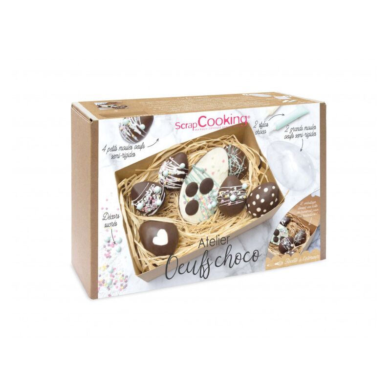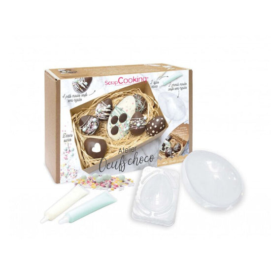Grâce à l’Atelier Œufs choco de Scrapcooking, réalisez de délicieux œufs en chocolat maison. Dans le kit, vous trouverez 6 moules – 2 grands et 4 petits, 2 stylos au chocolat, des décors sucrés, 1 boîte de transport et 1 livret recette. Il n’y a plus qu’à vous y mettre !