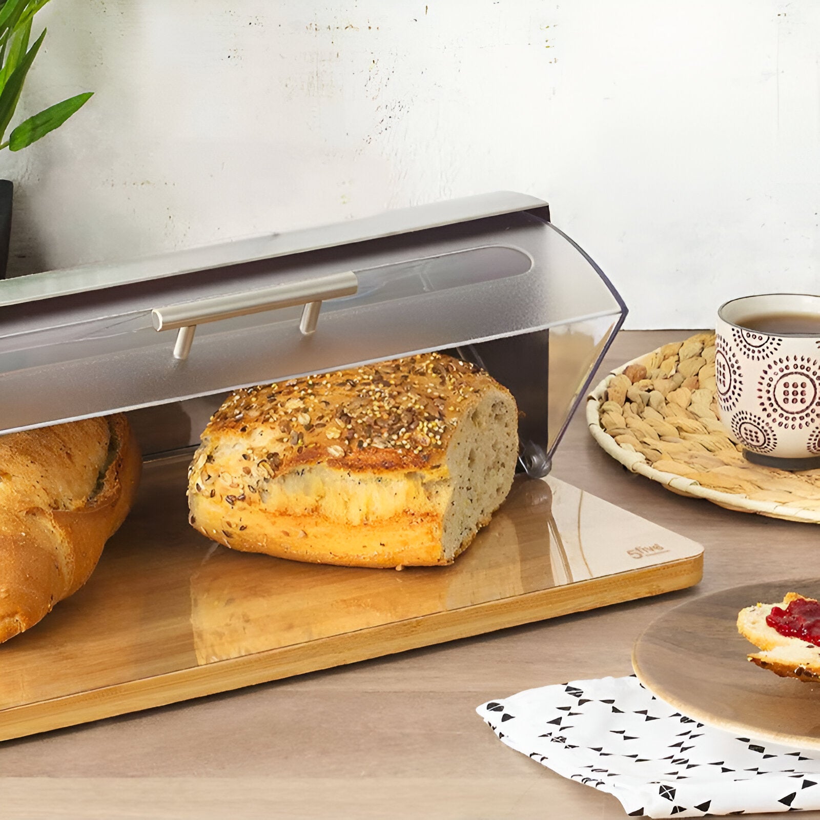 Vous en avez assez des pains, brioches et viennoiseries qui sèchent trop vite ? Adoptez une boîte à pain pour les conserver quelques jours supplémentaires ! En inox et bambou, celle-ci est aussi dotée d’une face avant en plexiglas permettant de voir en un coup d’œil ce qu’elle contient.