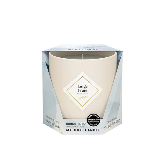 Bougie Bijou Les Essentielles bracelet or billes noires Linge frais Jolie Candle
