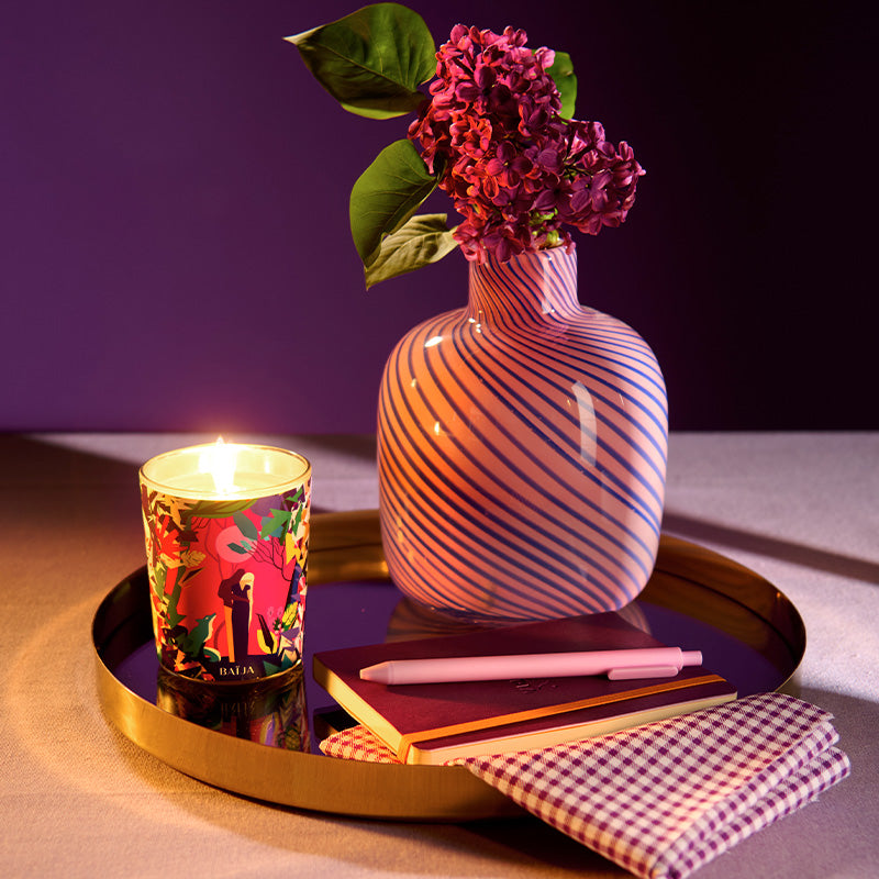 Le design raffiné et coloré de son contenant ne manquera pas de sublimer votre décoration intérieure, en ajoutant une touche de caractère à vos espaces de vie. Parfaite pour toutes les occasions, cette bougie est un véritable allié pour créer une ambiance chaleureuse et séduisante chez vous. Faites l'expérience d'un moment de luxe et de sérénité avec la bougie MINUIT CHÉRI de BAIJA, une invitation au bien-être et à la volupté.