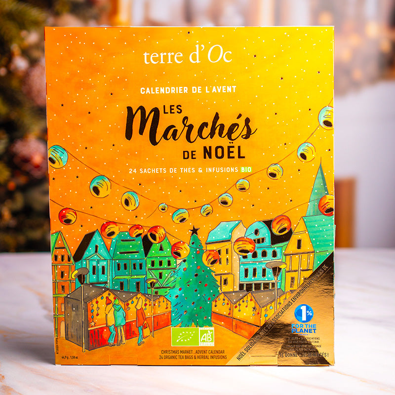 Laissez-vous transporter à travers un tour de France des traditions festives, où chaque journée de décembre vous réserve une surprise gourmande. Découvrez une variété de thés et infusions bio, inspirée par la richesse des marchés de Noël. Que diriez-vous d'un thé aux notes de pain d'épices alsacien, ou d'une infusion évoquant les rissoles savoyardes ? Chaque saveur est une invitation à explorer les délices de nos régions comme les sarments du Médoc ou les 13 desserts provençaux.
