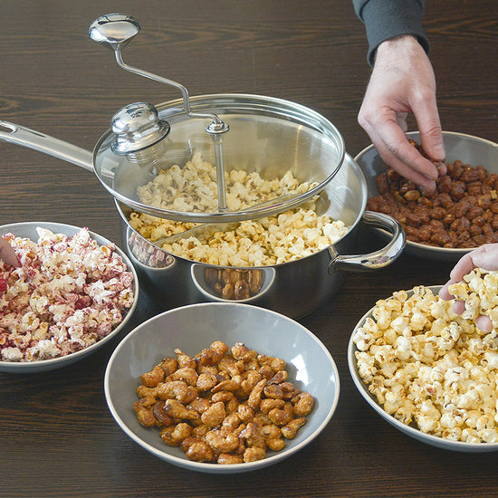 Découvrez la casserole à pop-corn en inox ARTAME, l'outil parfait pour vos soirées cinéma à la maison. Préparez jusqu'à 5 litres de pop-corn en 5 minutes, avec une cuisson uniforme et sans effort grâce à sa manivelle en inox.