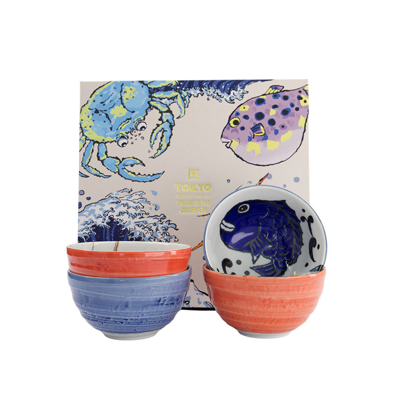 Coffret 4 bols en porcelaine 500 ml Seafood Tokyo Design