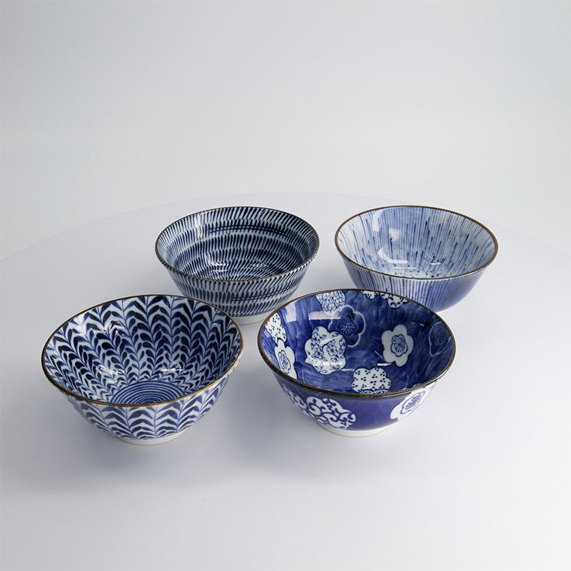 Coffret 4 bols en porcelaine 550 ml bleus Tayo Tokyo Design
