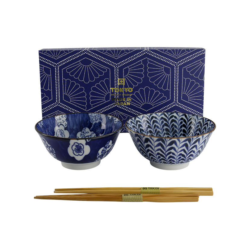 Coffret bols et baguettes 550 ml bleus Tayo Tokyo Design
