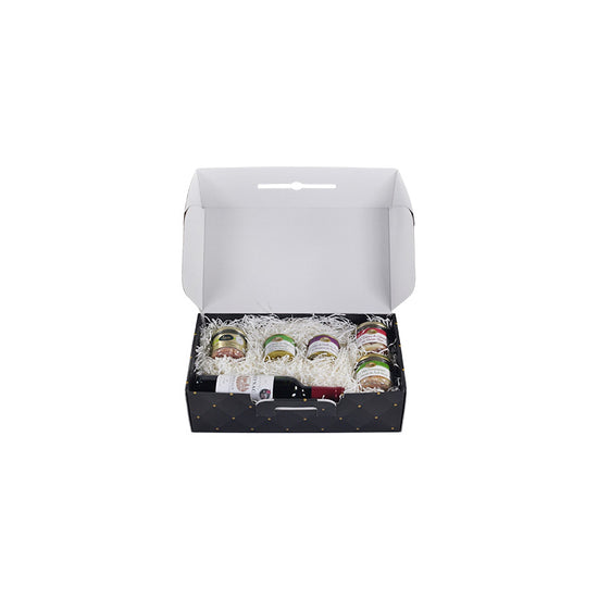 Découvrez le coffret gourmand VALETTE, alliant vins raffinés et terrines savoureuses. Une valisette pratique avec Bordeaux rouge et délices de canard, idéale pour un moment gastronomique convivial et festif. Parfait pour les amateurs de bonnes saveurs.