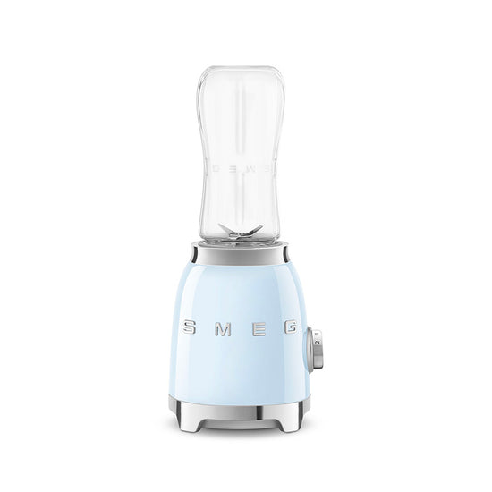 Découvrez le mini blender BLEU AZUR de SMEG, hommage authentique aux années 50. Compact et puissant, il prépare vos smoothies en un clin d'œil avec ses deux bouteilles ergonomiques, idéal pour savourer vos créations saines partout où vous allez.