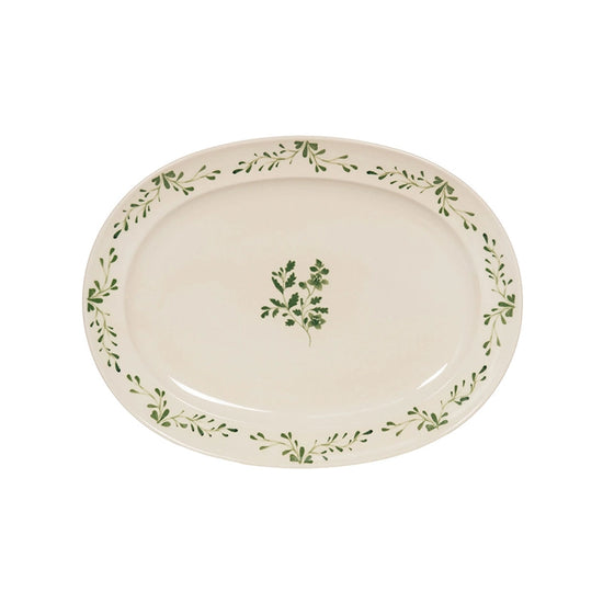 Plat ovale vert en grès 42x30cm Appoline Table Passion