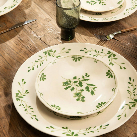 Plat rond vert en grès 32cm Appoline Table Passion