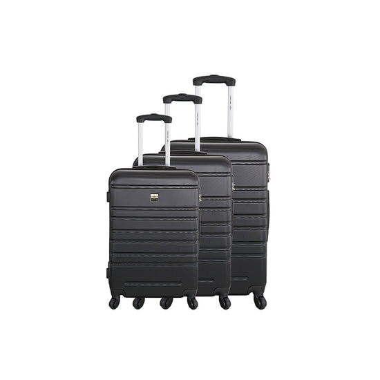Optez pour le set de 3 valises FRANCE BAG en ABS noir, alliant confort et fonctionnalité. Roues 360° et poignée télescopique garantissent une mobilité fluide. Parfait pour vos voyages, avec organisation intérieure optimale et cadenas à code pour plus de sécurité.