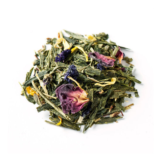 Découvrez le thé vert japonais Belle Journée de LUPICIA. Un mélange délicat de rooibos vert et de fruits frais, agrémenté de pétales de fleurs, pour une expérience sensorielle riche en couleurs et saveurs inoubliables.