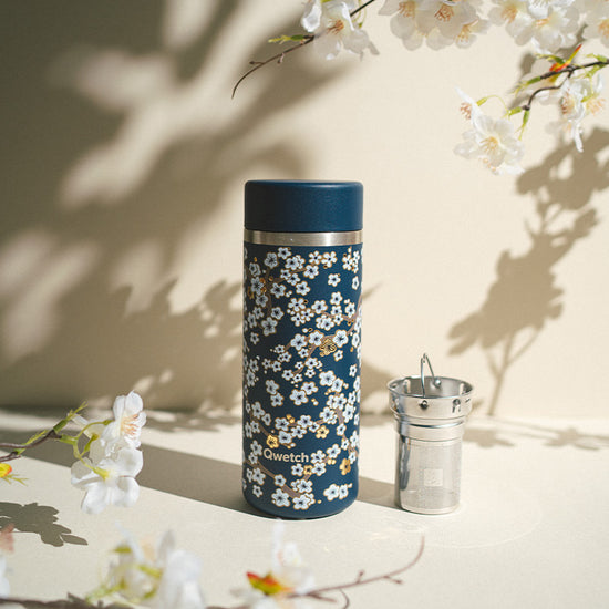 Théière isotherme en inox 400 ml bleu Flowers Qwetch
