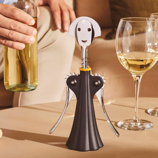 Découvrez le tire-bouchon ANNA G. d'ALESSI, un accessoire élégant et fonctionnel. En résine thermoplastique noire et zamac chromé, il allie design contemporain et performance pour ouvrir vos bouteilles avec style et aisance. Indispensable pour vos moments de convivialité.